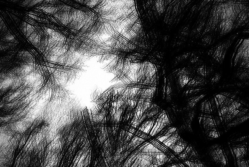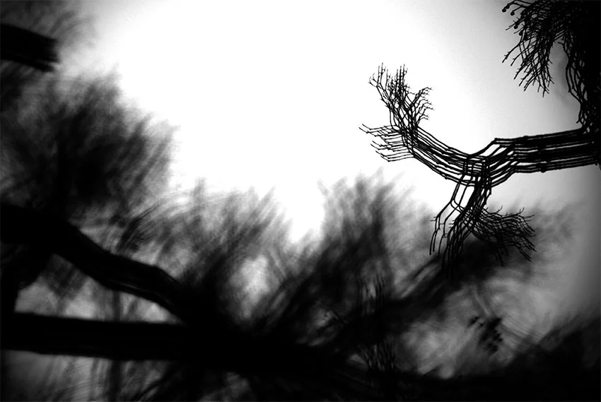 Sometimes, as an artist, you visualize your emotions and thoughts before your body can comprehend what is going on. I remember making these images lying on my back in the middle of winter, forgetting how cold the ground was on my skin. The shapes and movement of the bare branches above me entranced me. I would close my eyes and see them dancing closely, almost hauntingly, as if from a childhood nightmare. It was all I could see for months, and I almost felt as if they were enveloping me in some unknown darkness. A few months later, I learned I was suffering from depression. These images were created to help illustrate how I felt and saw things during this time, as well as to help my mind cope with whatever darkness had decided to take over.